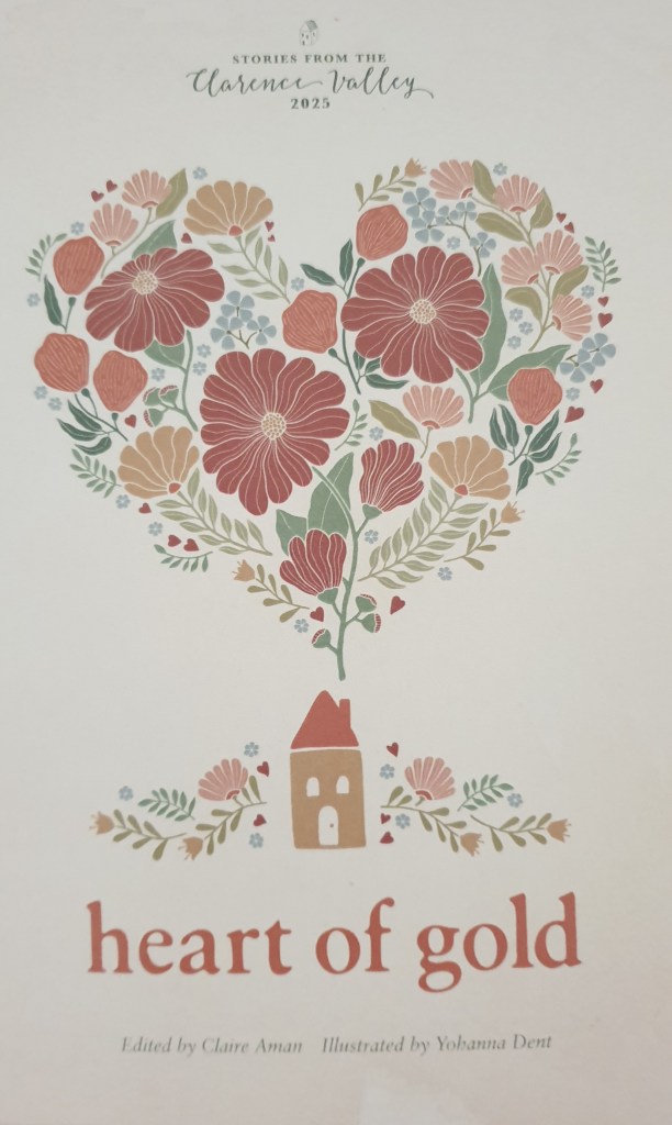 ‘Stories From the Clarence Valley 2025 – Heart of Gold‘ features stories of beauty and kindness from 68 writers of all ages who were shortlisted in the 2025 Long Way Home writing competition. Please email us at cvshortstories@gmail.com to arrange payment and delivery. $20.00